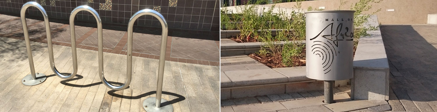 This custom bin for Mall of Africa was designed by Daniel Rebel Landscape Architects