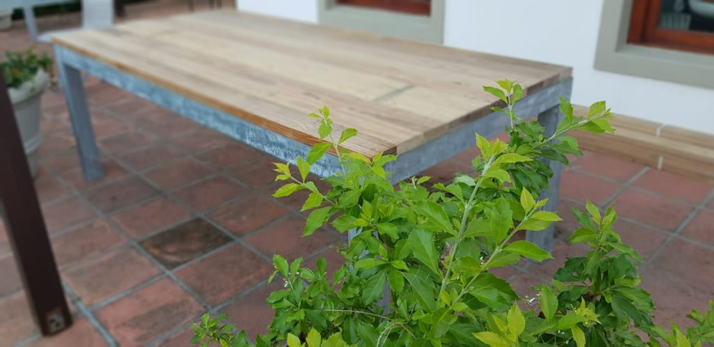 Our new Refectory Table is robust and ideal for outdoor settings, restaurants, patios and work spaces. With clean, simple lines, the frame is made from galvanised steel, on which a Rhino Wood top sits flush with the base, creating an uncomplicated, industrial feel to the table. The Rhino Wood top and galvanised steel elements are hardy, and weather beautifully outdoors, taking on a gun-metal grey hue over time. These tables can be made in any size, which makes them ideal for all spaces and applications.