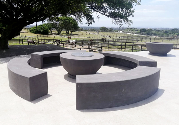 This beautiful Fire Pit area was created for this picturesque Equestrian Centre. We love nothing better than the challenge of bringing beautiful designs into stunning reality. These custom benches create a beautiful circle round the Windsor fire pit. Well done to our Cape Town team for a job well done.